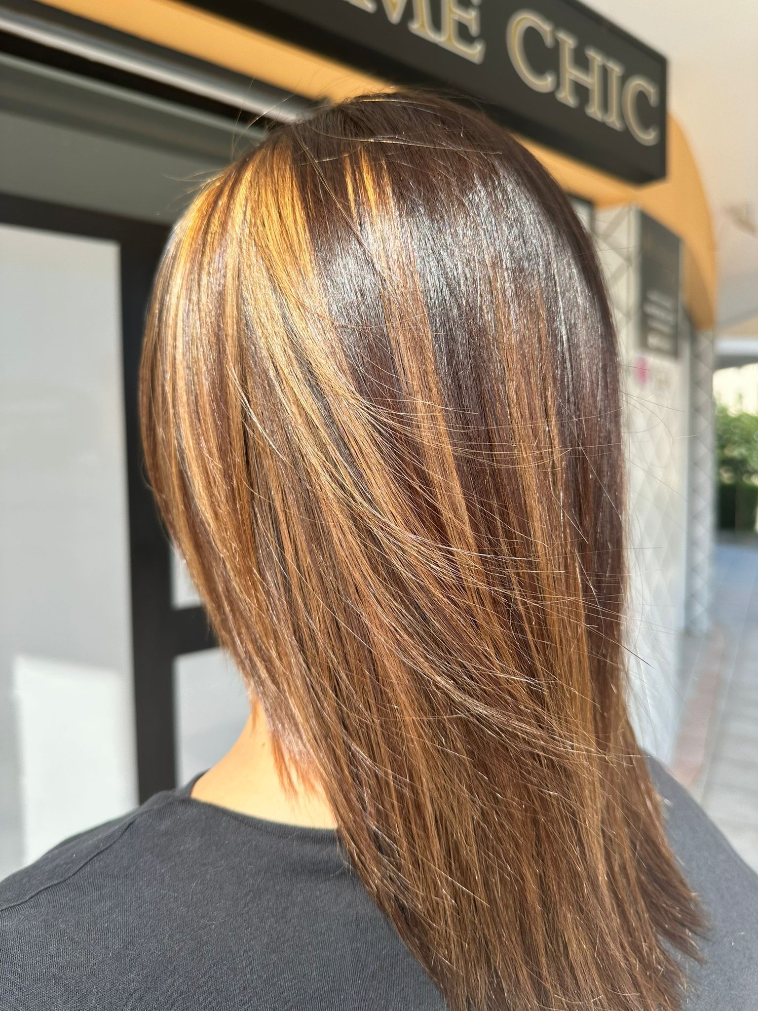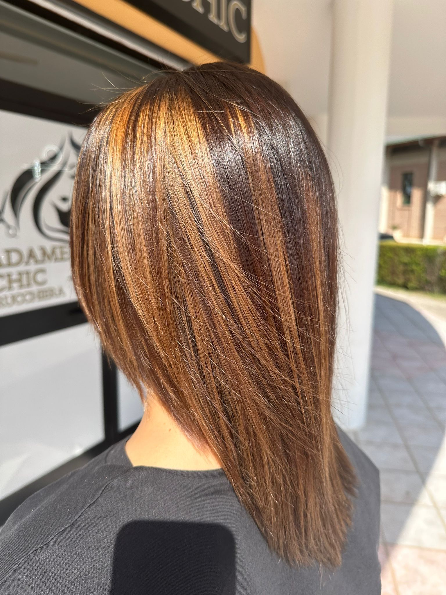 Una tecnica di colorazione dei capelli che consiste nell'applicare riflessi luminosi e brillanti.
